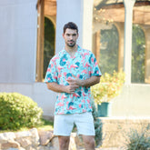 Featuring bright pink flamingos and lush tropical flowers, Designed to bring joy and relaxation to your closet. Embodying the spirit of freedom and joy, this shirt is perfect for casual outings.